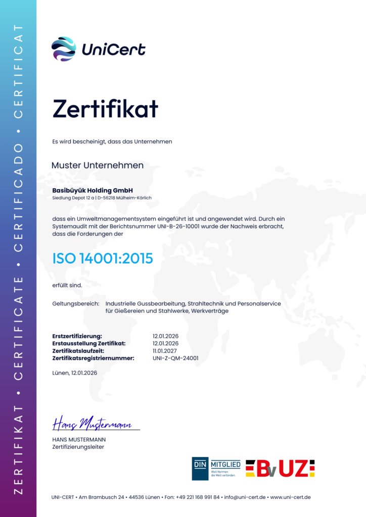 Als eine international anerkannte Zertifizierungsorganisation mit Sitz in Lünen, NRW, zertifizieren wir Ihr Unternehmenskonzept, Personen und Produkte.